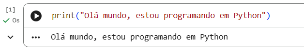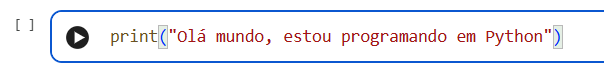O famoso primeiro comando de toda linguagem de programação, escrever na tela, é o print(), colocando entre aspas o texto que você quer que apareça: