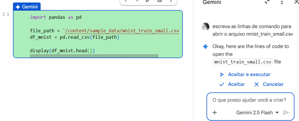 Para quem “gosta”, é possível integrar o GEMINI e ir perguntando para ele quais comandos são necessários para executar as ações, veja um exemplo:
